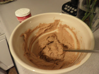 Add wet ingredients to dry and mix, scraping sides and bottom of the bowl to be sure none of the dry mixture is left. With an ice cream scoop, fill a muffin pan 3/4 full, sprayed with a nonstick spray. Bake for approximately 1 hour. I was a dumb-dumb and I used muffin cups... don't repeat my mistake... no muffin cups, put the mixture straight into the sprayed muffin pan.